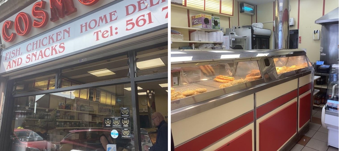 Best Fish and Chip shop has many contenders and everyone has their own favourite. The similarities are endless and the menus rarely vary by much. Nor do the prices. What struck me with Cosmo’s was the cleanliness of the interior. The friendliness of the young lady while I waited for my fresh chips. The numerous awards in the window. And the obvious loyalty of the customers, as most were on first name terms. Cosmo’s deserves to be up there with the best and Debbie behind the counter gets my vote too. Close to the town centre and the Airport this is well worth a visit. Highly Recommended.
